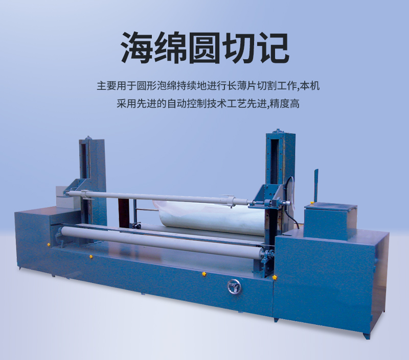 2.本機把圓形泡綿連續(xù)切成自動卷繞的薄片,可直接使用,也可通過粘合機粘合后使用,可廣泛應(yīng)用于服裝、鞋材、裝飾、地墊、床墊、沙發(fā)等多種行業(yè),